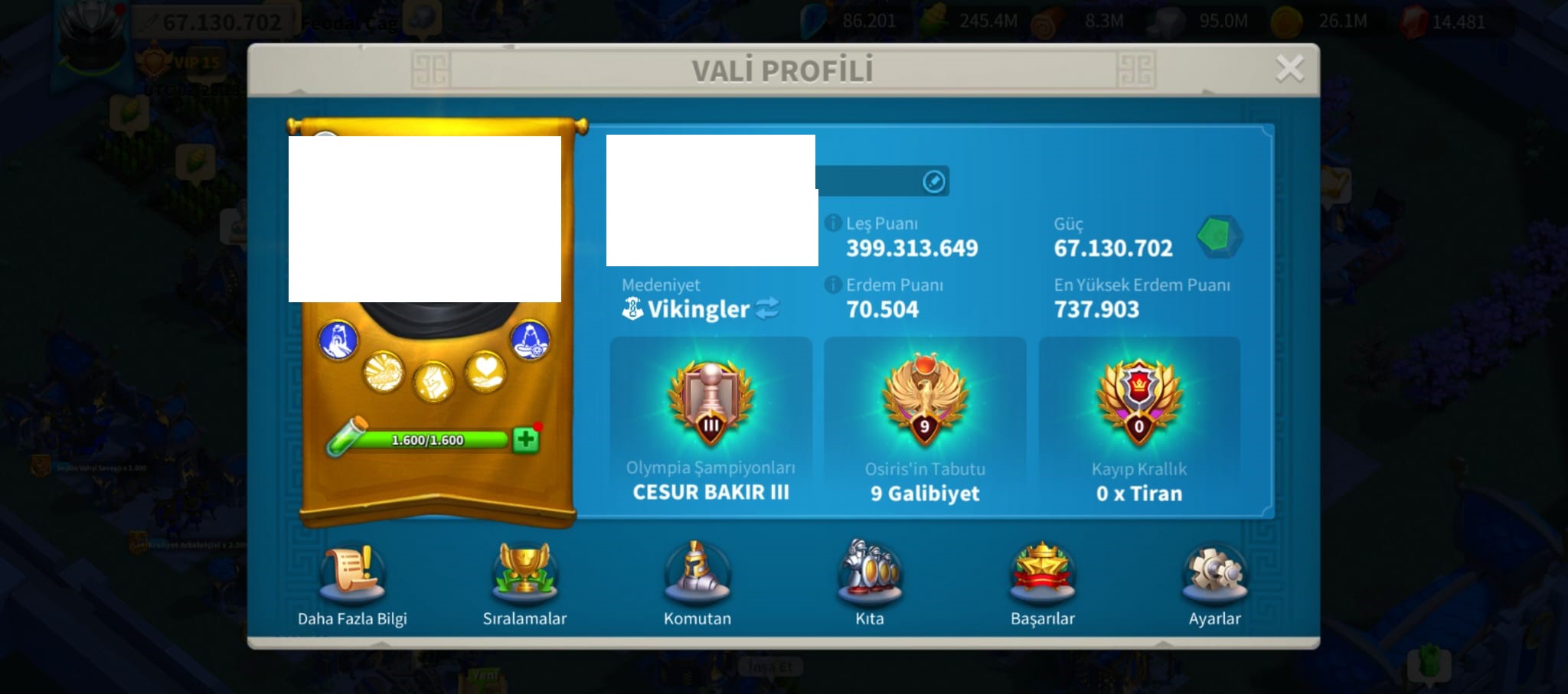 VİP16 MİX T5 HESAP ! 871 EVRENSEL KAFA HAZIR ! 324 GÜN HIZ ! +10B ÜZERİNDEKİ RSS DEVREDİLECEKTİR ! BU FIYATA GÖRE DOLU DOLU KOMUTANA SAHİPTİR ! +KVK TEMASI MEVCUTTUR ! +2 FARM ! Durum: Satıldı Satış Tarihi: 18 Şubat 2026
