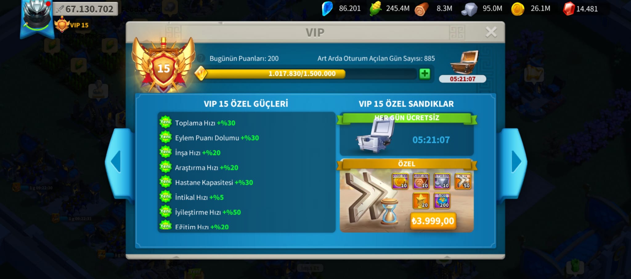 VİP13 // T4 // 160 GÜNLÜK TAZE HİÇ GÖÇ ETMEMİŞ SEZON2 HESABI ! SEZON2 BAŞLANGICINDADIR ! FIRSATI KAÇIRMA !