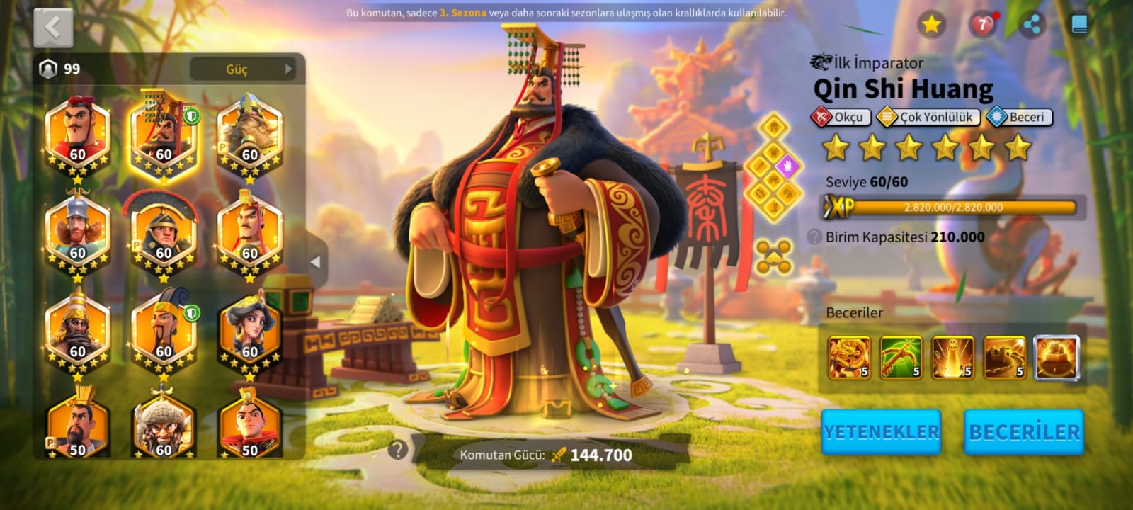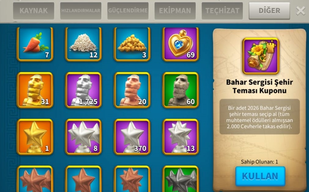VİP17 TATİL BİLETİ İLE GÖÇ ETMEYE YAKIN ! FULL PRİME KOMUTANLAR YAPILMIŞ ! 4 KITA AÇIK ALAN VİP16 FİYATINA ACİL SATLI VİP17 HESABI ! SADECE 9K ! BESLEYİCİ 56,31,39,31 4 ADET YAN KARAKTER !