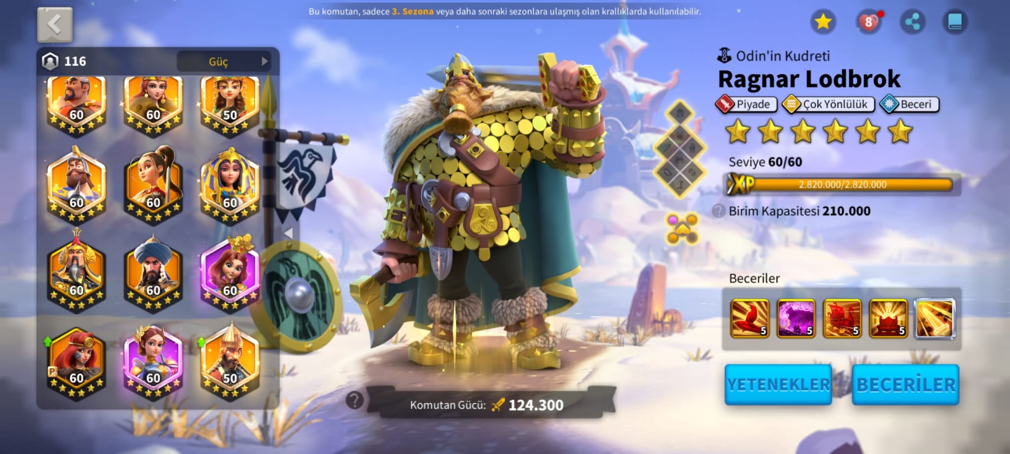 VİP15 T5 HESAP ! SEZON2 VEYA SEZON3 GÖÇ ETME HAKKI VARDIR ! 4 EFSANEVİ KOMUTANLI ! 301 GÜNLÜK !