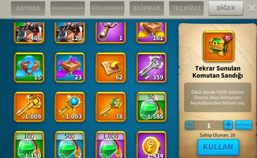 30 EKİPMAN-20 KRİTİKLİ VİP 17 , 27 FULL KOMUTAN İLE !