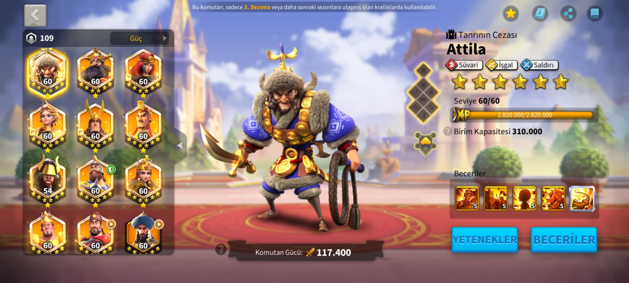 VİP16 BALİNA PROFİLLİ ! 3 KITA FULL SET 5 KITA AÇIK ALAN ATİLLA/SUBUTAİ ‘ LI RALLY HESAP ! 4.2B KP !